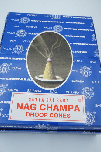 Nag Champa Dhoop Cones with mini Stand, 12 Ct. in Box - ohiohippiessmokeshop.com