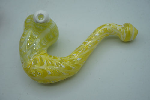 Yellow an White Borosilicate Sherloc Pipe- OhioHippiesSmokeShop.com
