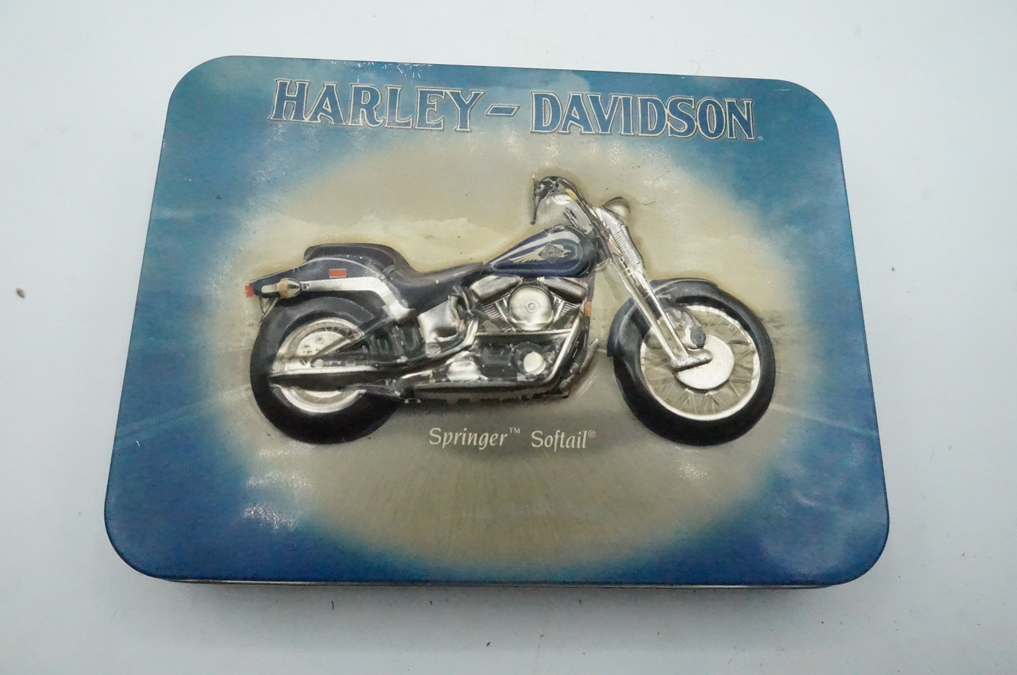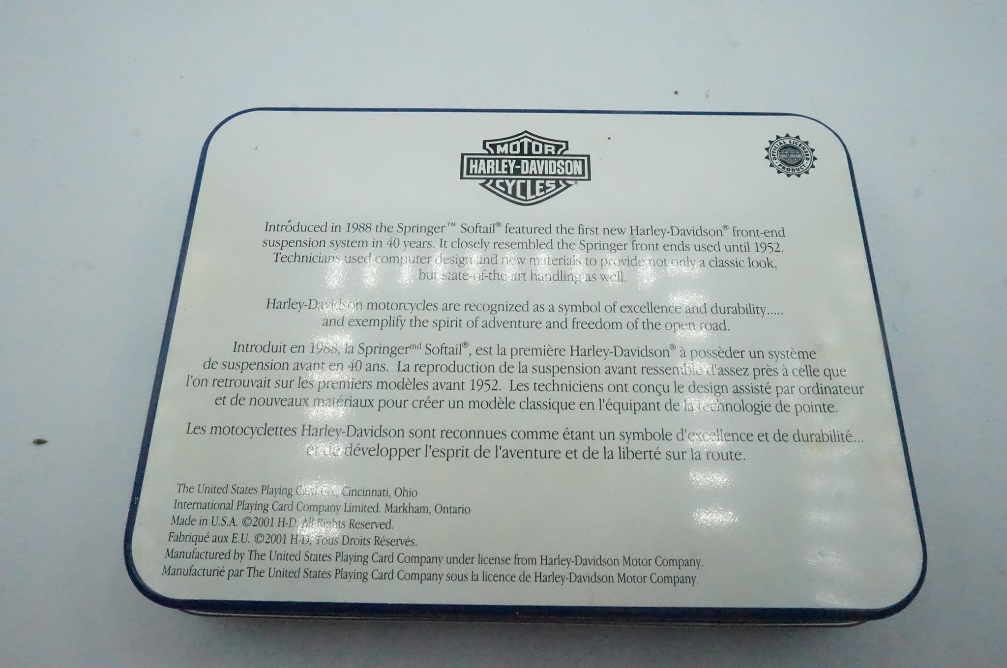 Harley-Davison Playing Card container "Springer Softtail" Condition: cards are Unopen Tin: Great. Holds 2 sets.