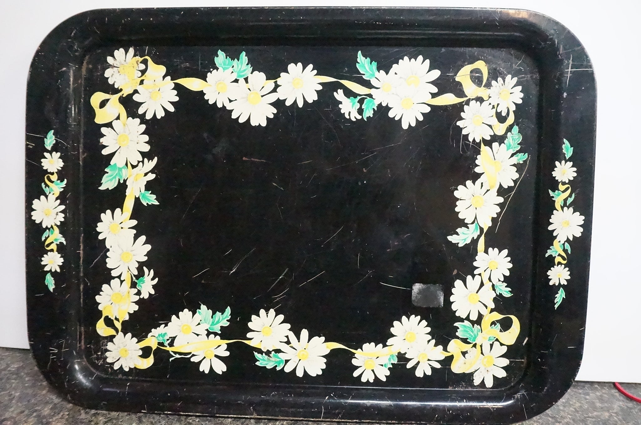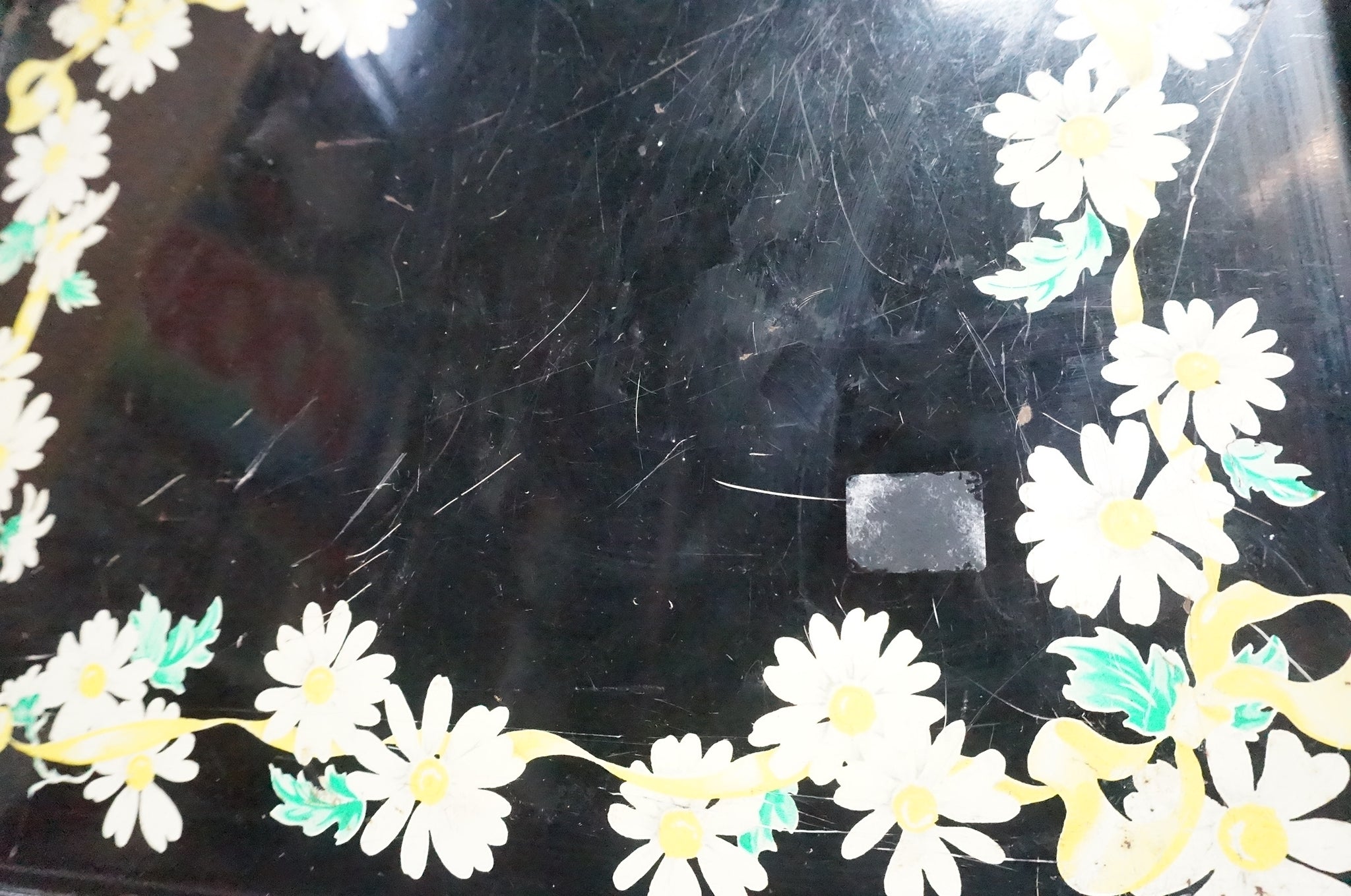 with white flowers around the edge. Condition noticeable scratches otherwise Great.