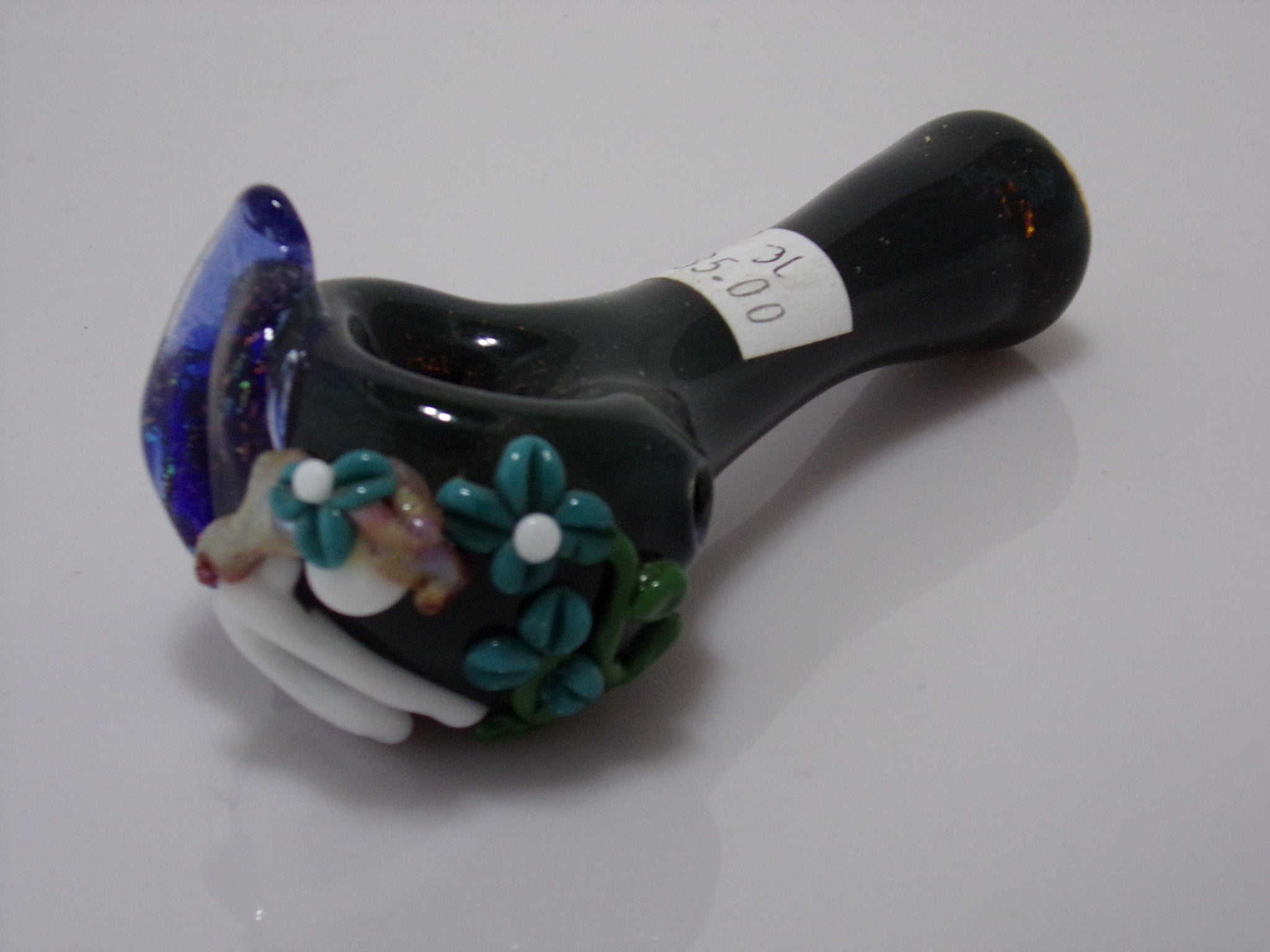 The Fairy Garden Bowl is a really cool pipe made by a Female American Glassblower. This pipe was made using borosilicate glass and the fairy was sculpted with glass. Fairy Garden Bowl fits firmly in your hand. Take advantage of our quick shipping options and make your purchase now!
